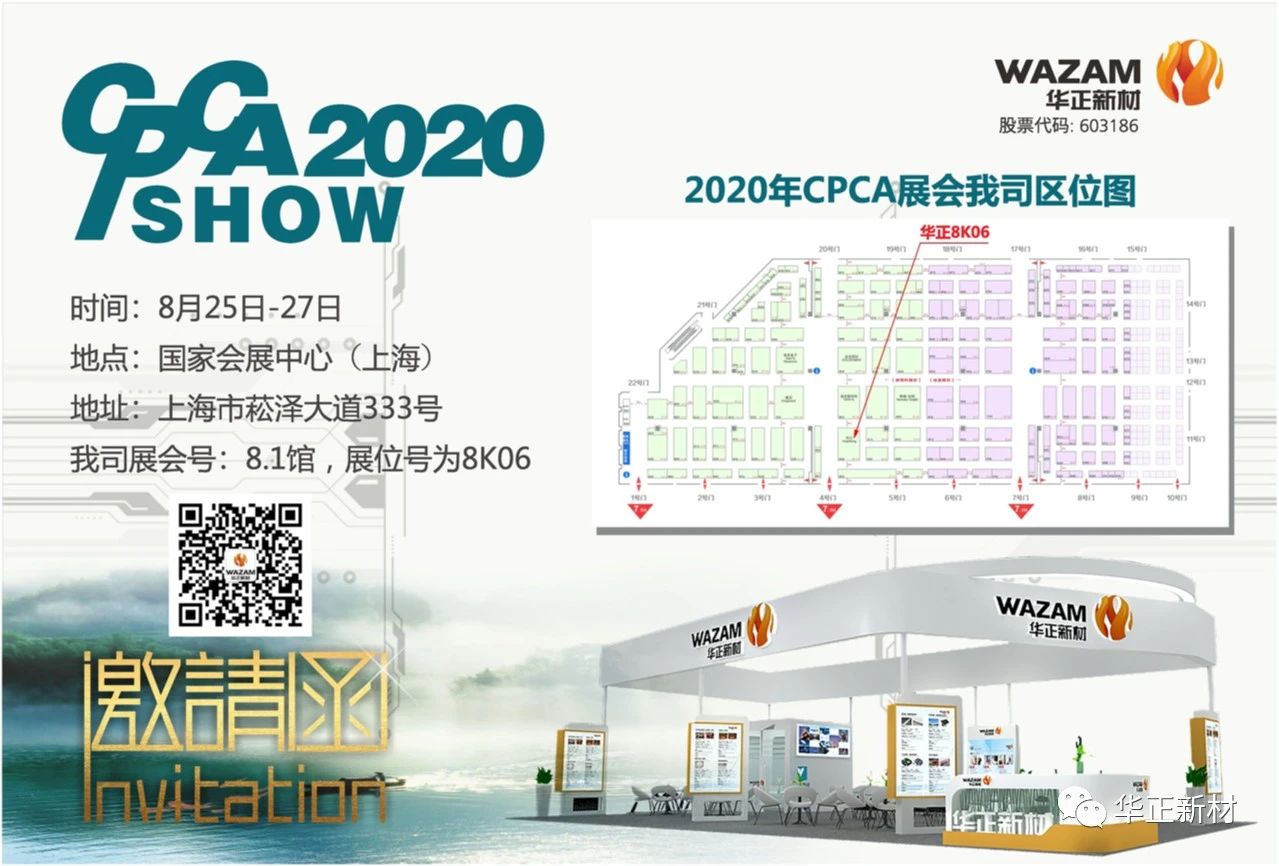 【展會前瞻】華正新材邀您共赴2020年CPCA展會(8.1館.展位8K06)